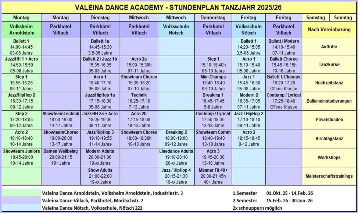Diese Schulstart-Service Site ist die wichtigste Informationsplattform für die ersten 4 Wochen. Du findest hier Anmeldeinformationen, Probestundenpläne, Tanzbekleidungshinweise, uvm. kurz: ALLES WAS FÜR DEINEN START WICHTIG IST!