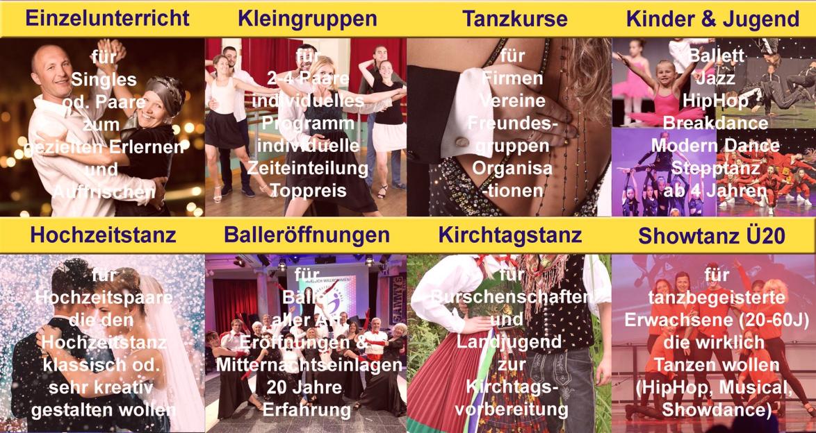 Entdecken Sie mit uns die Welt des Tanzens - Ballett, HipHop, Jazz, Breakdance, Modern Dance, Nationaltanz, Step oder Paartanz - Walzer, Polka, Disco Fox, Salsa uvm. und machen Sie mit uns eine Reise durch 25 Jahre Valeina Dance Bühnenleben. Nehmen Sie mit uns jetzt Kontakt auf!